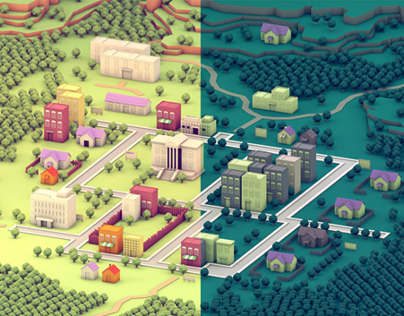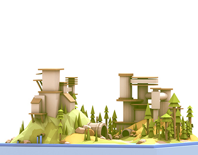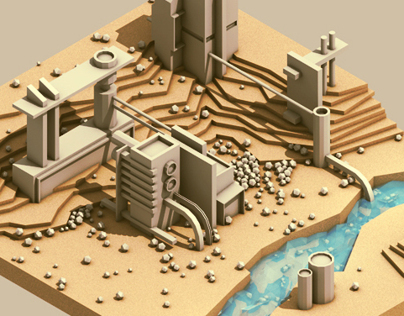 Self-initiated experiments. Building little worlds in isometric views.