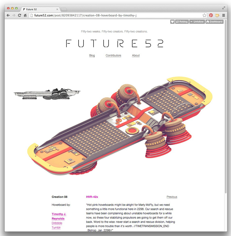 My piece for Future 52 group project. Hoverboard (model no. HVR-42x)