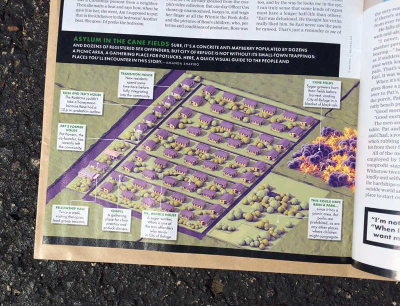 An illustration of the "City of Refuge" in Florida for the May 2015 issue of GQ Magazine.