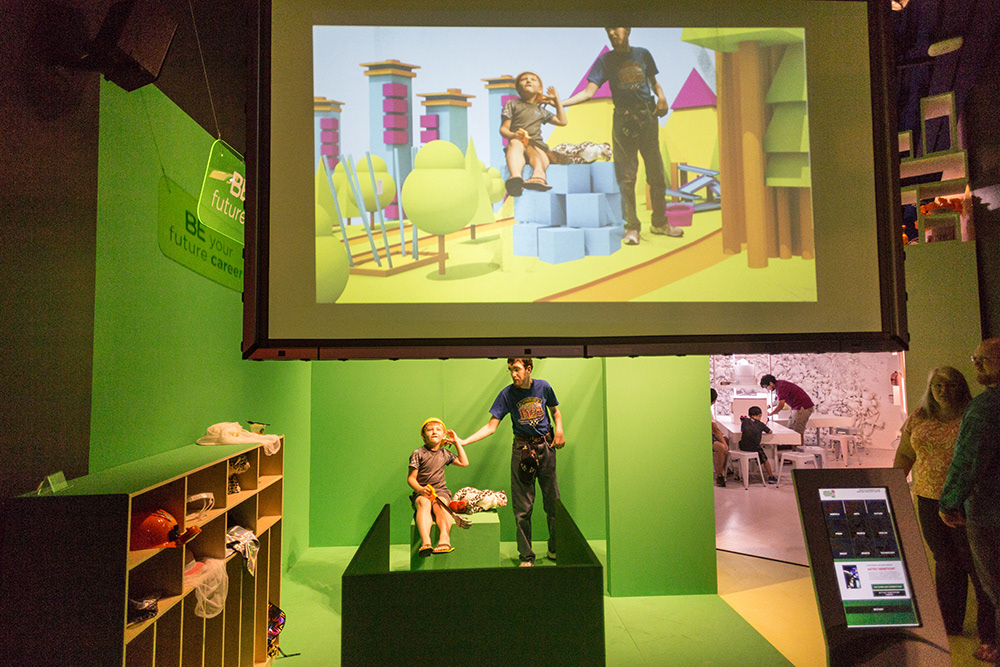"Costumes aren’t just for make-believe! Kids can dress up in the uniforms and clothes that help them to imagine their role in the future. Hop in front of our green screen to play out different scenarios—on a city street, park, or house of the future!"